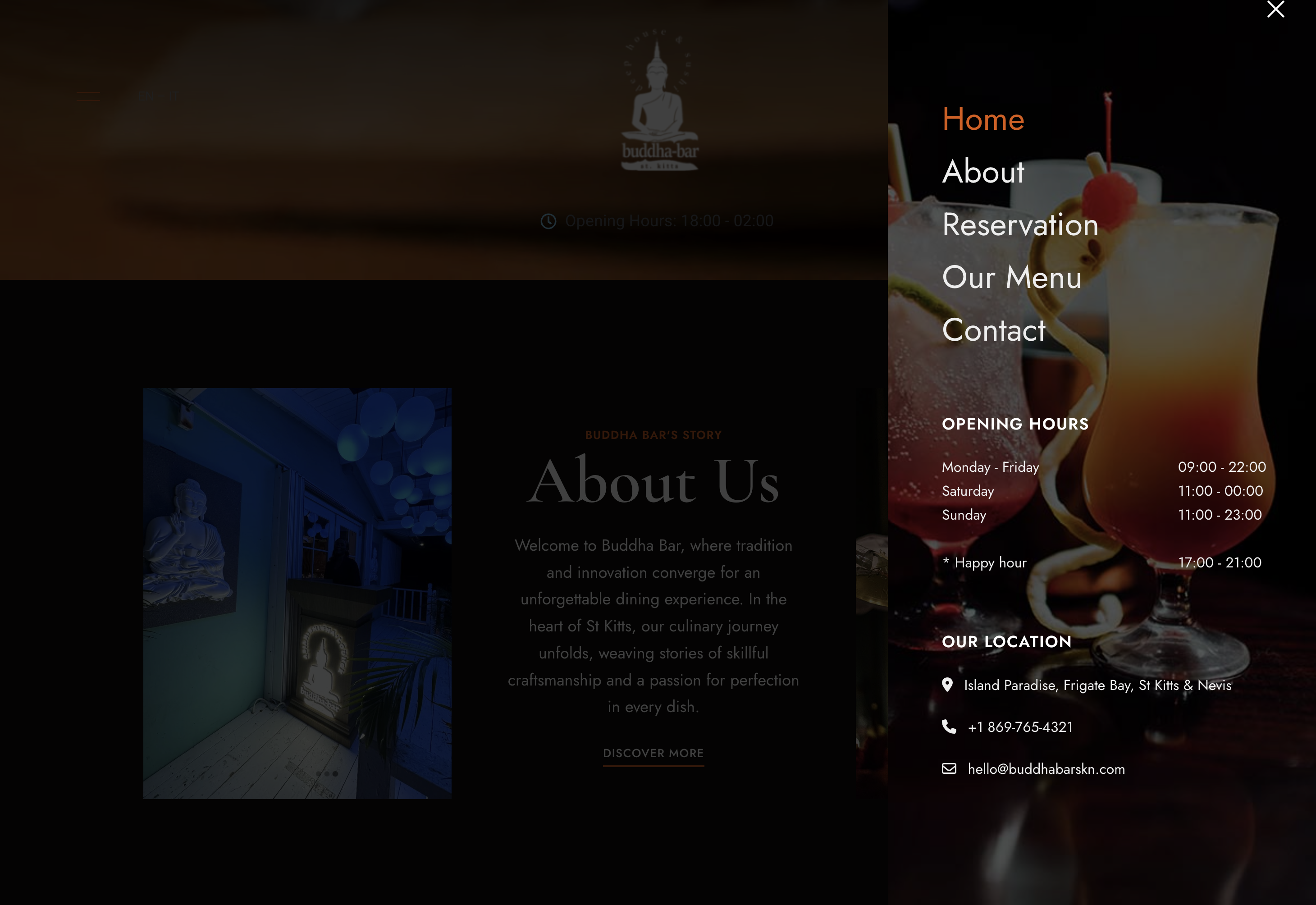 The project outcome for the Buddha Bar and Lounge website was highly successful, achieving its goals of enhancing customer experience and engagement. The website’s user-friendly features, such as table booking, menu availability, and Google Maps integration, provide a seamless and convenient experience for customers. The visually appealing design and clear information reflect the bar and lounge’s brand identity, encouraging visits and repeat customers. Overall, the website effectively combines functionality and aesthetics to deliver measurable results, enhancing both customer satisfaction and operational efficiency for Buddha Bar and Lounge.