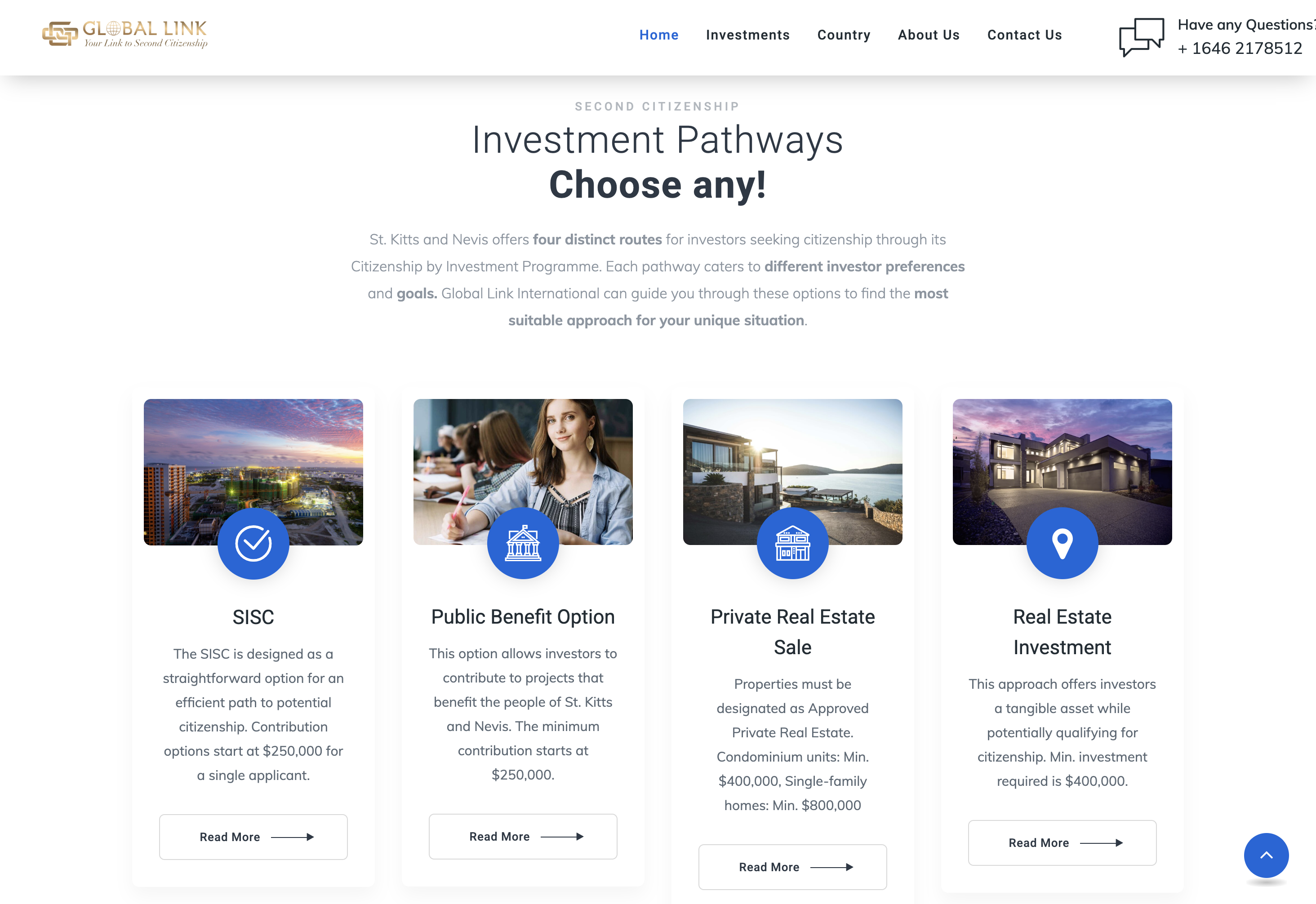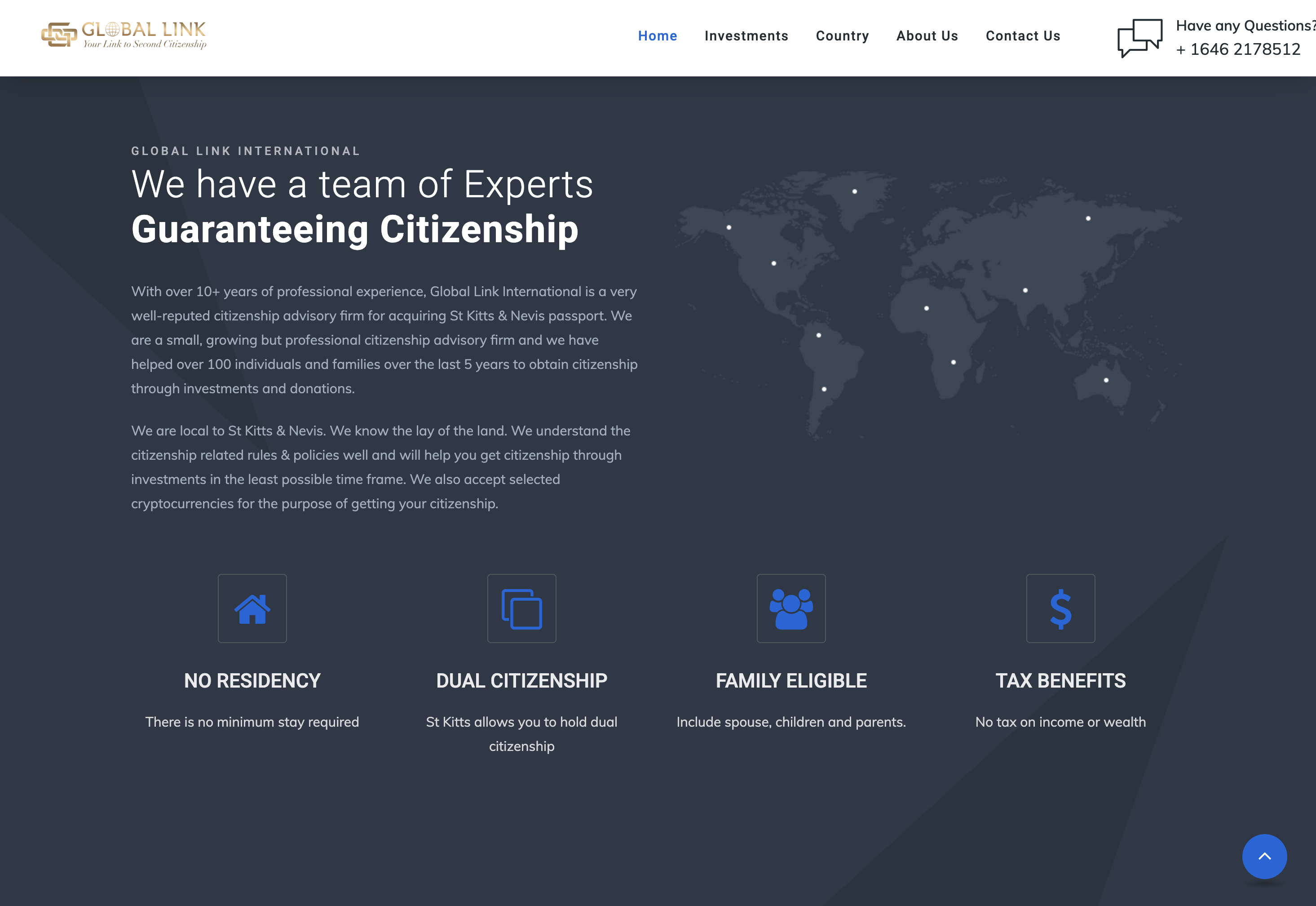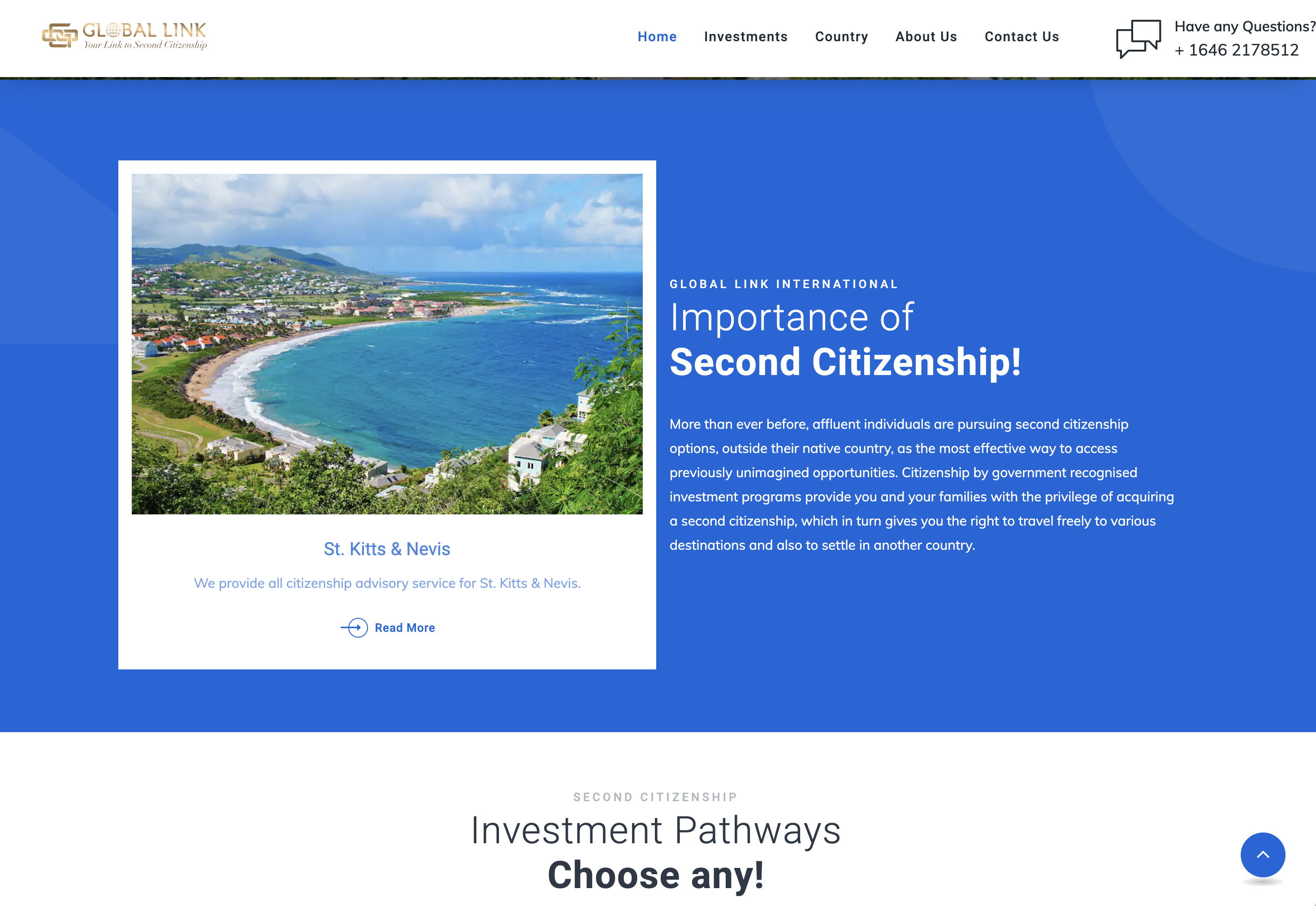 The Global Link International website is designed to provide comprehensive information about the firm’s services in helping individuals and families acquire second citizenship in St. Kitts & Nevis through investment. With a professional and trustworthy tone, the website outlines the investment options, highlights the benefits of citizenship, and showcases the firm’s expertise and success stories. Key features include contact information for easy inquiries and detailed sections on investments, country benefits, and the firm’s team. The website aims to build trust, engage potential clients, and establish Global Link International as a leader in citizenship advisory services, making it a valuable tool for both clients and the firm.