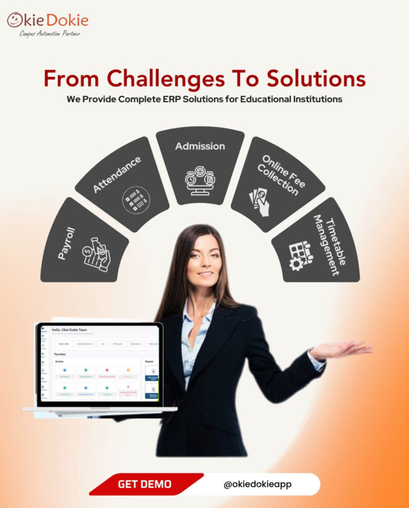 Okie Dokie Pay is a campus automation partner that provides comprehensive ERP (Enterprise Resource Planning) solutions tailored for educational institutions. The company simplifies and streamlines various administrative processes, including admission management, fee collection, timetable scheduling, and more, helping institutions transition from challenges to efficient solutions. With a focus on automation and seamless integration, Okie Dokie Pay enhances operational efficiency and transparency for schools, colleges, and universities. Their services aim to reduce manual workload, improve accuracy, and provide a better experience for students, parents, and administrators alike.